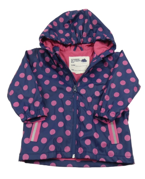 Tmavomodro/růžová bodkovaná á nepromokavá jarná bunda s kapucňou