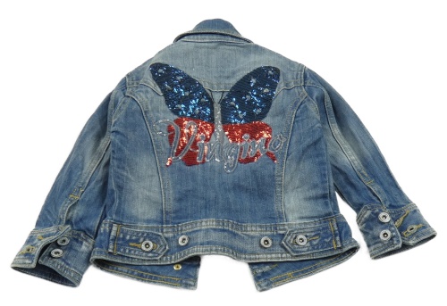 Modrá rifľová bunda s motýlem z flitrů Vingino
