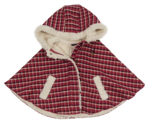 Tmavočerveno-vínovo-ružové kockované zateplené pončo s kapucňou