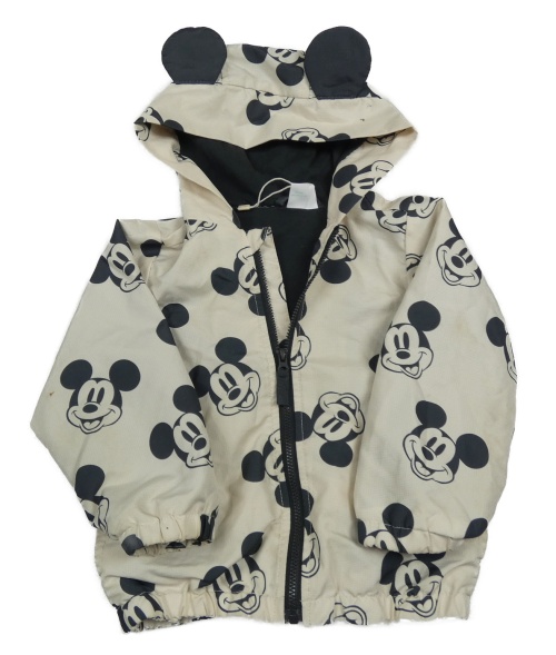 • Smotanová kockovaná šušťáková jarná bunda s Mickey a kapucňou Disney
