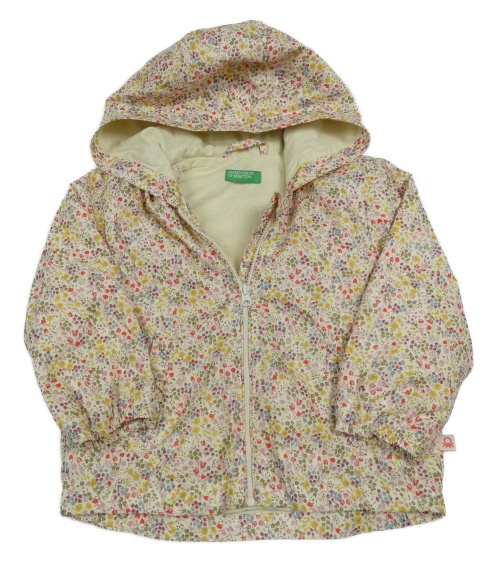 Žltá kvetovaná šušťáková jarná bunda s kapucňou Benetton