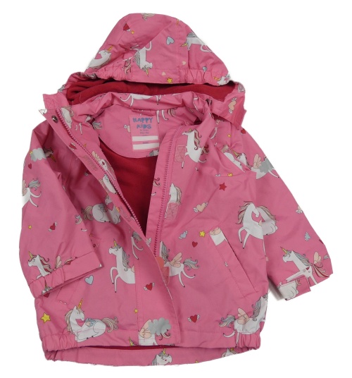 • Ružová šušťáková jarná bunda s jednorožcami a srdiečkami a odopínacíá kapucňou TCM