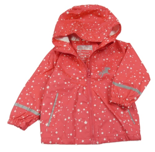 Tmavoružová nepromokavá bunda s hviezdičkami a kapucňou C&A