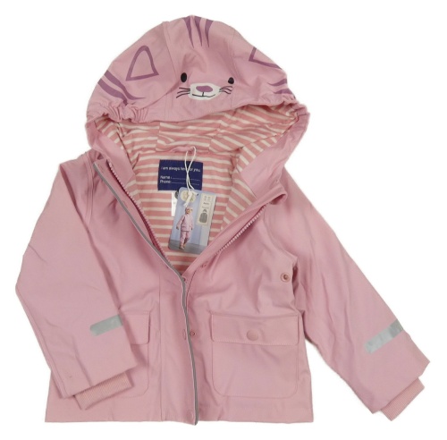 Nové - Svetloružová nepromokavá jarná bunda s mačkou a kapucňou Lily & Dan