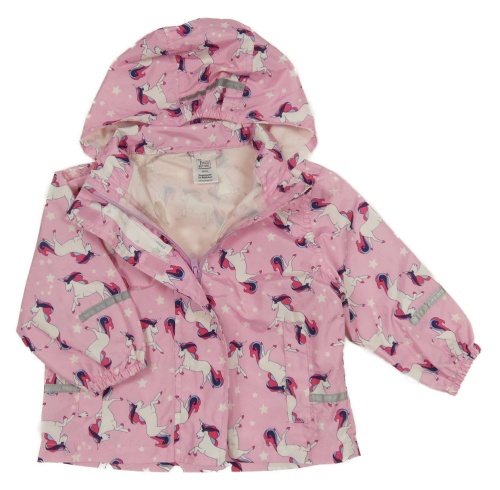Svetloružová šušťáková bunda s jednorožcami a kapucňou Pocopiano