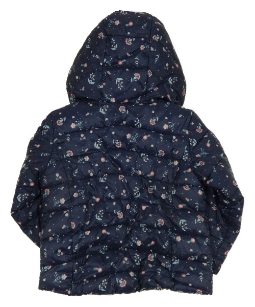 • Tmavomodrá kvetovaná šušťáková prešívaná zateplená bunda s kapucňou C&A