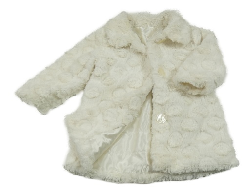 Biely bodkovaná ý chlpatý podšitý kabát