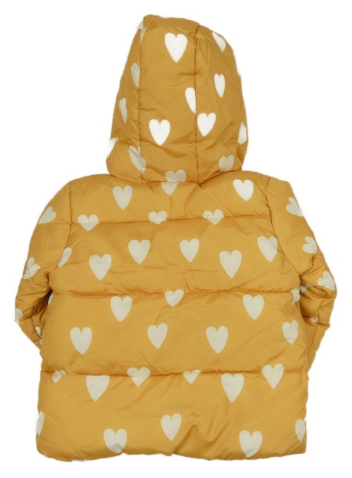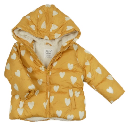 Žltá šušťáková zimná bunda so srdiečkami a kapucňou F&F