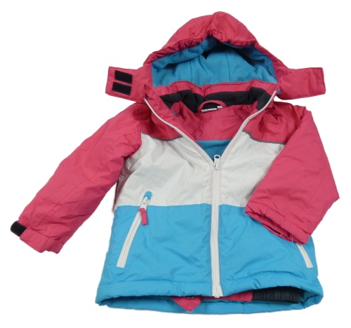 • Neónově ružovo-bielo-modrá šušťáková lyžiarska bunda s kapucňou Papagino