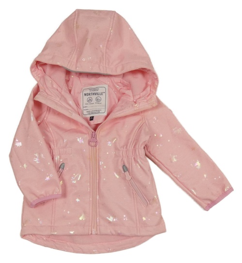 Svetloružová softshellová parka s jednorožcami a kapucňou C&A