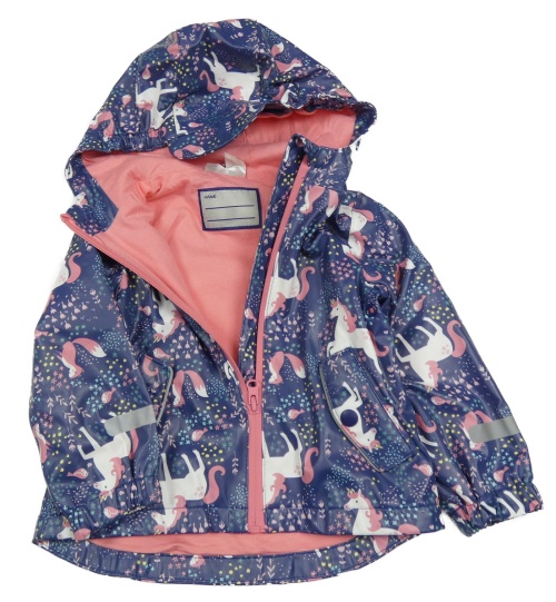 • Tmavomodrá kvetovaná nepromokavá jarná bunda s jednorožcami a kapucňou Lily & Dan