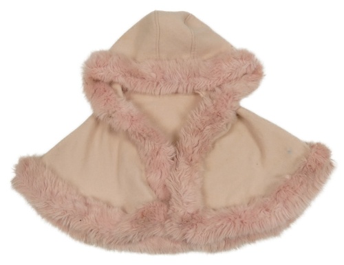 Svetloružové flaušové pončo s kožešinou a kapucňou