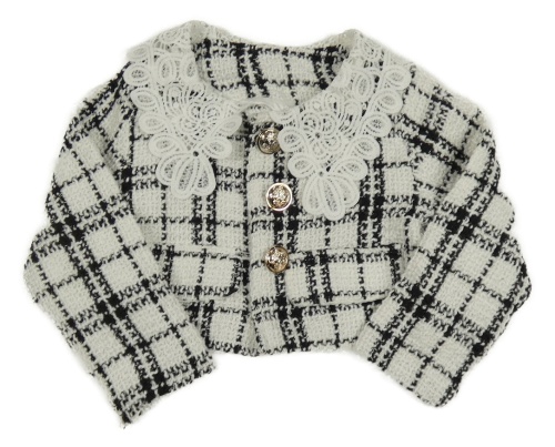 Bielo-čierne kockované podšité bolerko s čipkovým golierikom Shein