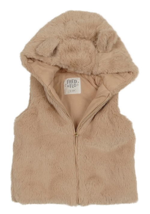 Ružová kožušinová zateplená vesta s kapucňou s uškami F&F