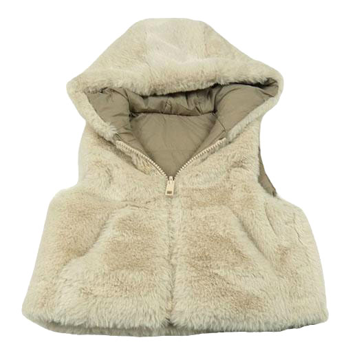 Béžová kožušinová zateplená obojstranná vesta s kapucňou Zara