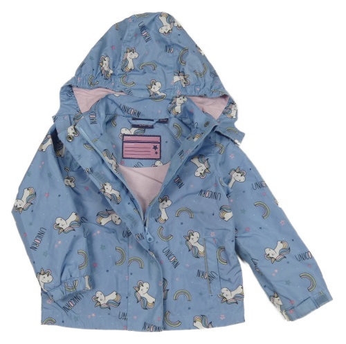 Modrá šušťáková jarná bunda s jednorožcami a kapucňou Impidimpi