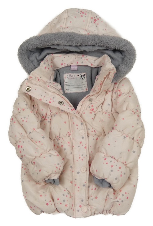 Svetloružová šušťáková zimná bunda s hviezdami a kapucňou Dopodopo