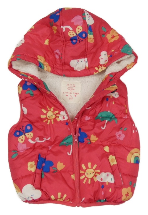 Ružová šušťáková zateplená vesta s obrázkami a kapucňou F&F