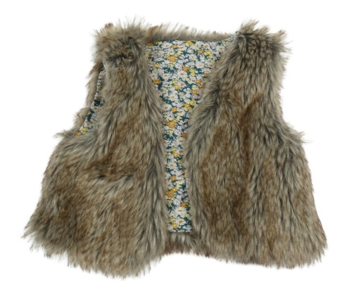 Hnedo-sivá kožušinová podšitá vesta