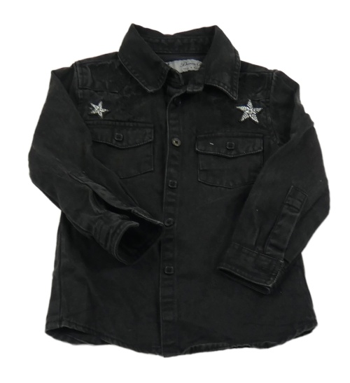 Čierna rifľová košeľová bunda s hviezdičkami a kvetmi Denim Co.