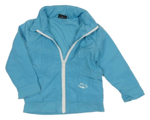 Svetlomodrá šušťáková jarná bunda s dívkou a kapucňou