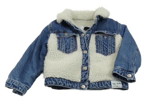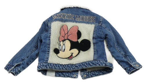 Modro-smotanová riflovo/huňatá zateplená bunda s Minnie a golierikom ZARA