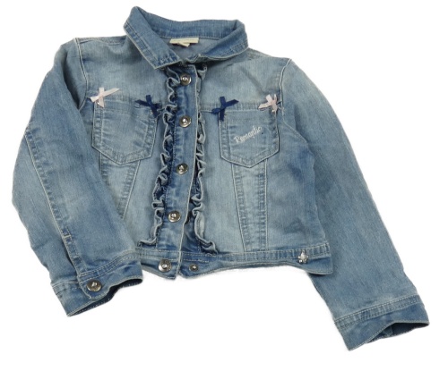 Svetlomodrá tepláková rifľová crop bunda s mašľami