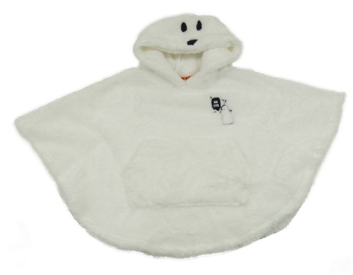 Biele chlpaté pončo s kapucí - duch
