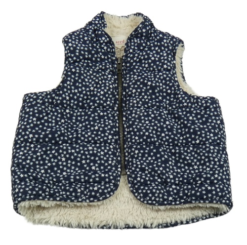 Tmavomodrá prešívaná šušťáková zateplená vesta s hviezdičkami seed
