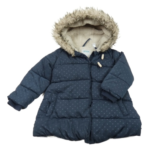 • Tmavomodrý šušťákový prešívaný zimný kabát s bodkami a kapucňou Obaibi