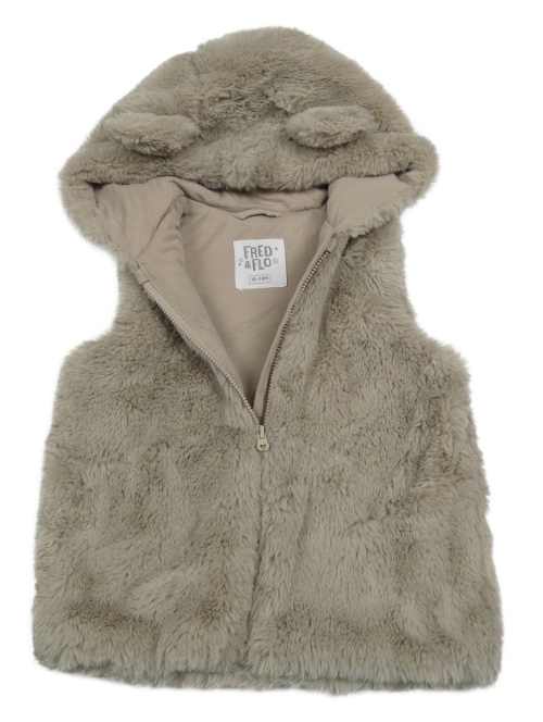 Hnedá kožušinová podšitá vesta s kapucňou F&F