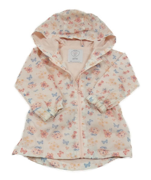 • Svetloružová šušťáková jarná parka s kvietkami a motýlikmi a kapucňou PRIMARK