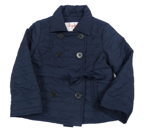 Tmavomodrý šusťákový zateplený kabátek s opaskom
