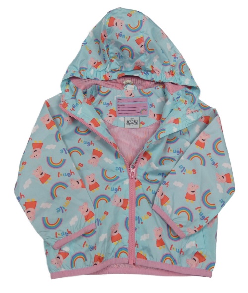 Svetlomodrá šušťáková jarná bunda s Peppa pig a kapucňou