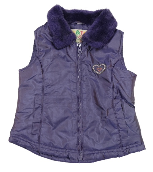 Fialová lesklá šušťáková zateplená vesta so srdcem a kožešinou
