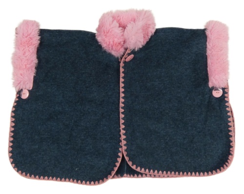 Tmavomodré melírované fleecové zateplené pončo s kožešinou