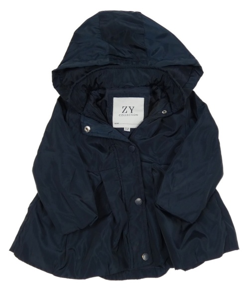 Tmavomodrý šušťákový jarný zateplený kabát s odopínacíá kapucňou ZY