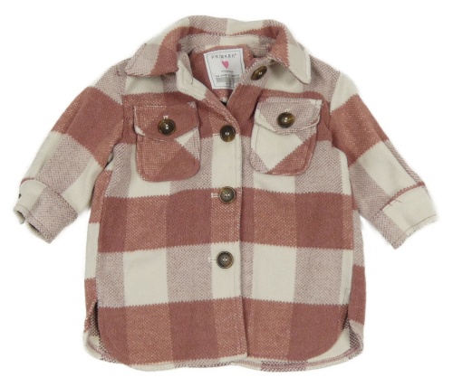Starorůžovo-biela kockovaná košeľová bunda Primark