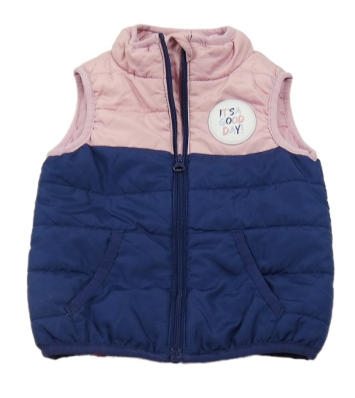 • Svetloružová -tmavomodrá prešívaná šušťáková zateplená vesta s nášivkou Lily & Dan