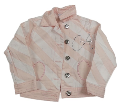 Svetloružová -biela pruhovaná plátenná bunda s nápisem z kamínků