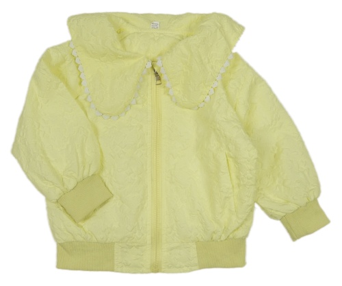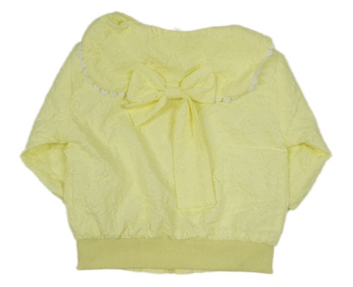 Žltá vzorovaná šušťáková jesenná bunda s golierikom a mašlou