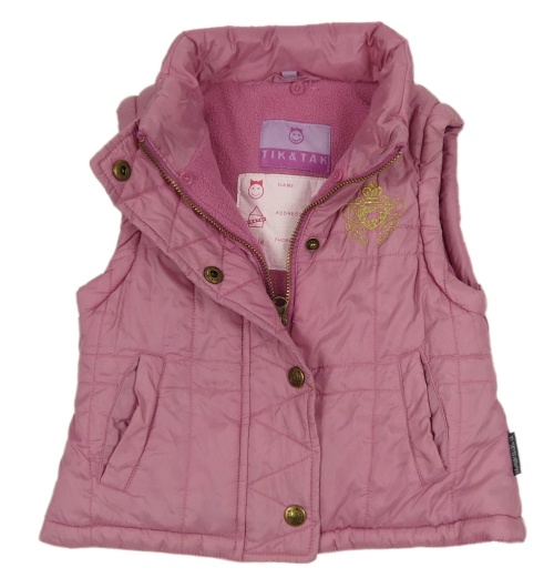 Ružová šušťáková prešívaná zateplená vesta s výšivkou Tik&Tak