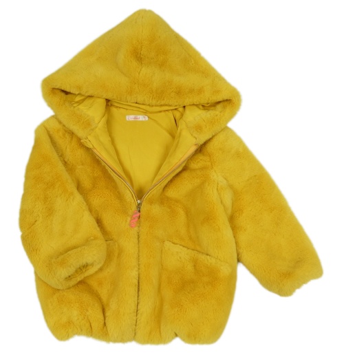Žlutý chlupatý podšitý kabátek s kapucňou
