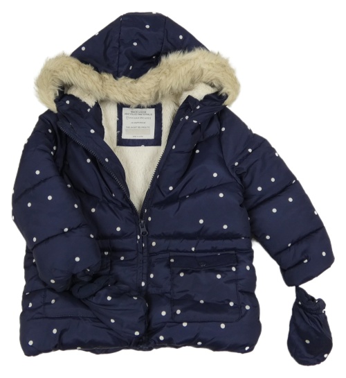 • Tmavomodrá bodkovaná á šušťáková zimná bunda s kapucí + rukavice Primark