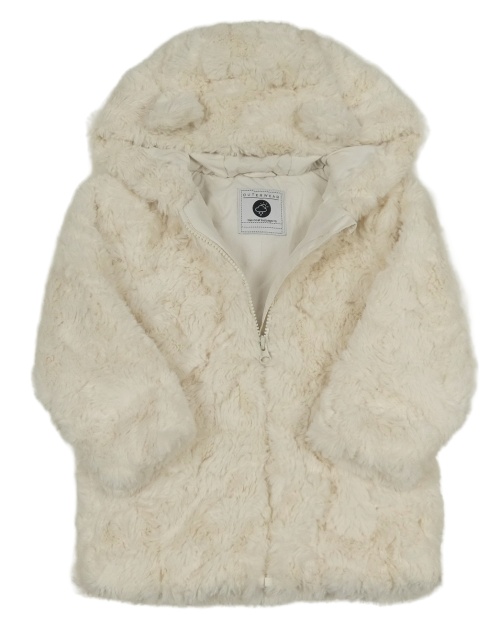 Smotanová kožušinová zateplená bunda s kapucňou Tu