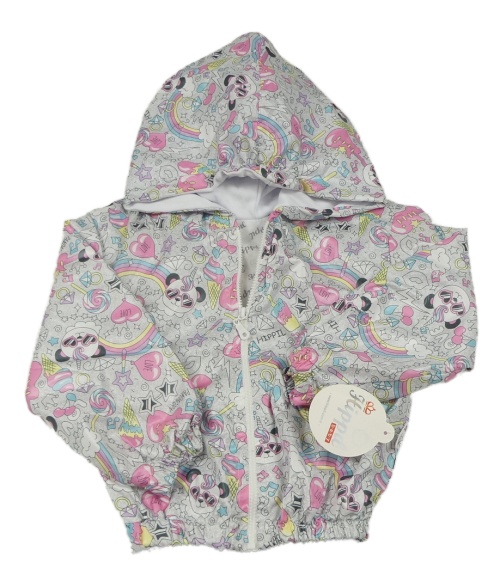 • Nová - svetlosivá melírovaná šušťáková jesenná bunda s obrázkami a kapucňou