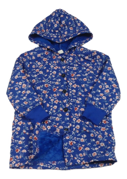 Zafírový zateplený kabát s kvietkami a kapucňou SHEIN