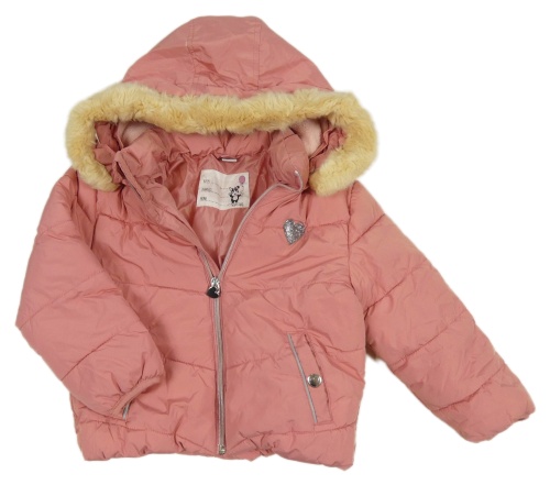 • Ružová prešívaná šušťáková zimná bunda so strieborným srdiečkom a kapucňou s kožešinou dopodopo