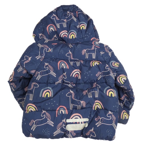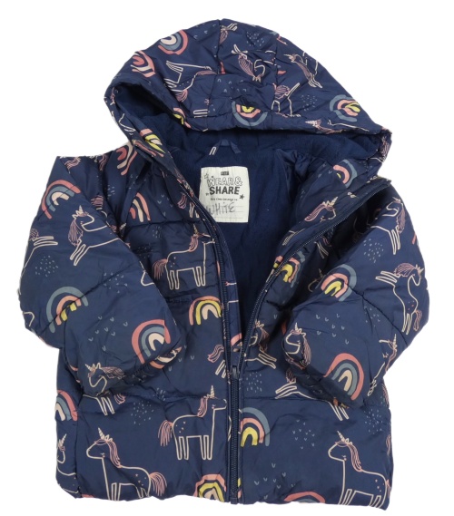 Tmavomodrá šušťáková zimná bunda s jednorožcami a duhami a kapucňou F&F