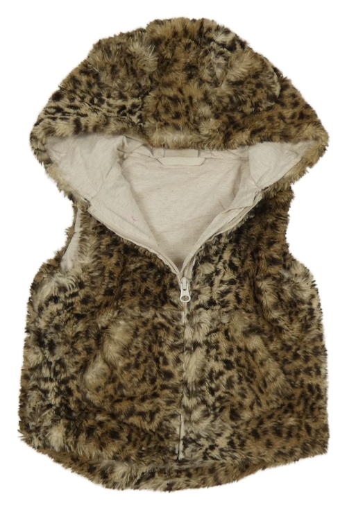 Béžovo-čierna chlpatá podšitá leopardí vesta s kapucňou Next